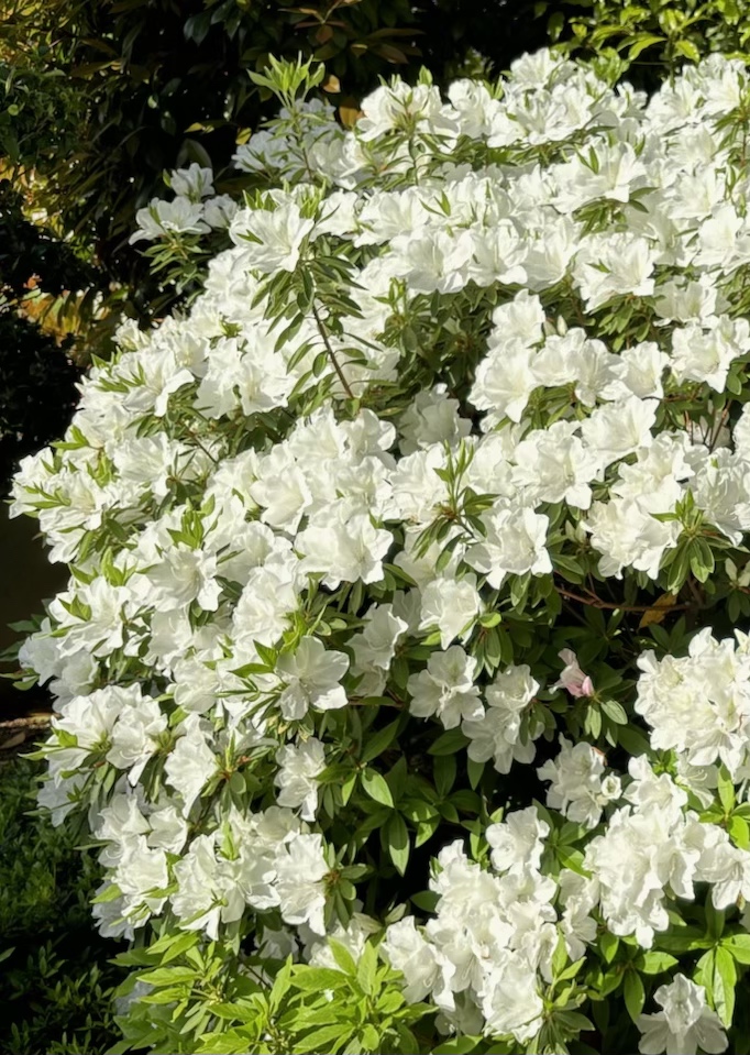 春を迎えますと 庭の様子が一変いたします。植物たちが一斉に生命力を漲らせ、たくさんの蕾がほころび始めます。特にツツジやサツキが満開になると、それはもう見事な迫力で、庭中が鮮やかな色彩に包まれます。その頃には、小さなミツバチたちが、芳しい蜜を求めて忙しなく飛び交う姿もまた、心和む風景です。