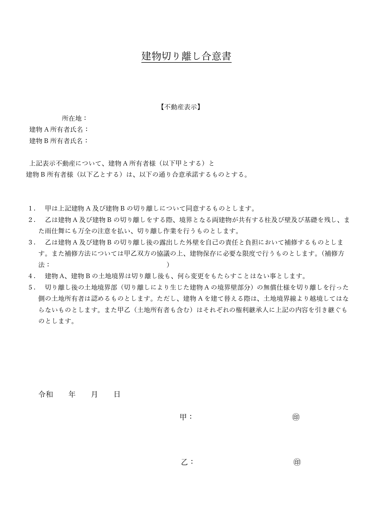 解体契約を交わす際には解体方法と隣地様宅の壁修繕方法の確認、解体同意書の