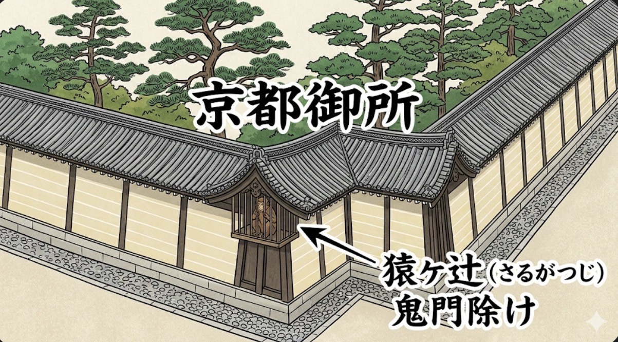 これは、京都御所の北東の角が凹んでいる「猿ヶ辻(さるがつじ)」の知恵に倣ったもの。実はこれ、鬼門の角を「欠け」させることで、「ここには角(カド)がありませんから、鬼さんは通り過ぎてくださいね」という、なんとも奥ゆかしい「かわし」の技なのです。