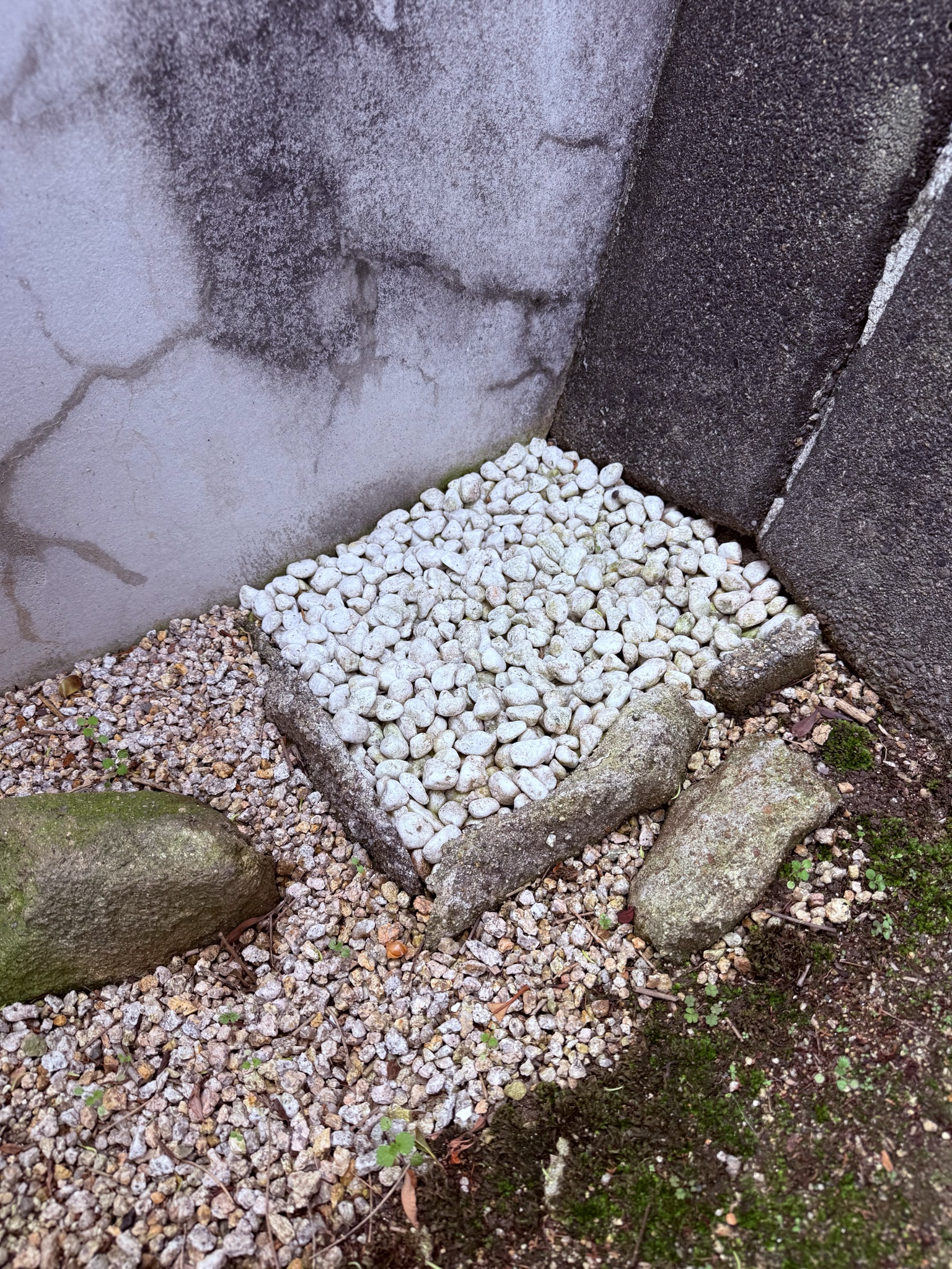 白い玉砂利は、光を反射してその場所を明るく清める「結界」の印。